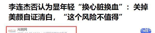 光明网2025-12-08《李连杰否认为显年轻“换心脏换血”:关掉美颜自证清白,“这个风险不值得”》